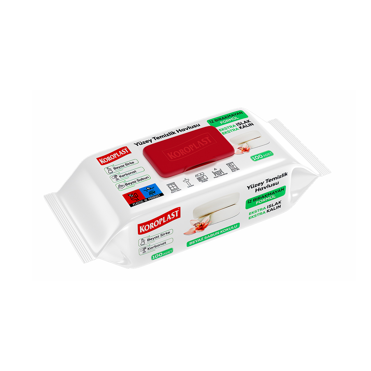 KOROPLAST YÜZEY TEMİZLİK HAVLUSU BEYAZ SABUN 100 LÜ